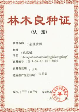 金陵黃楓--林木良種證