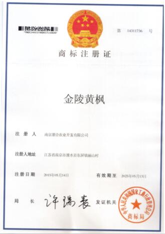 注冊商標“金陵黃楓”