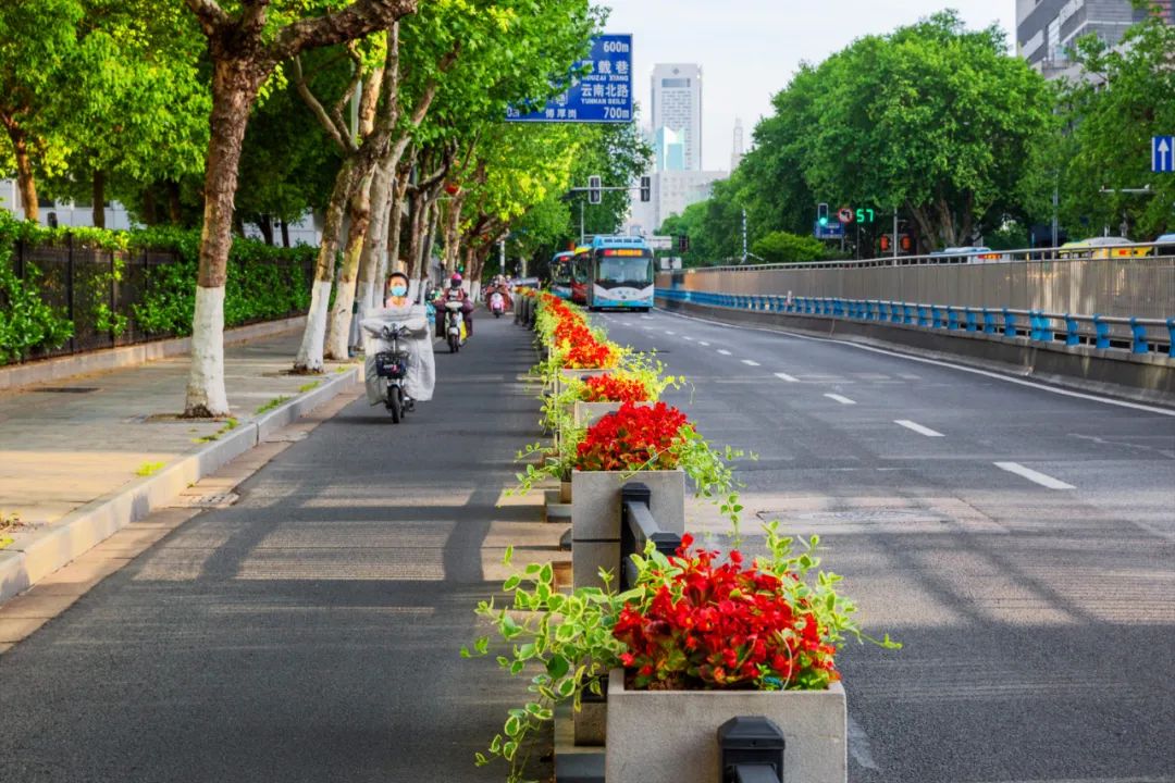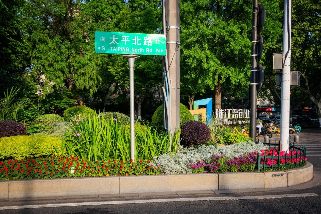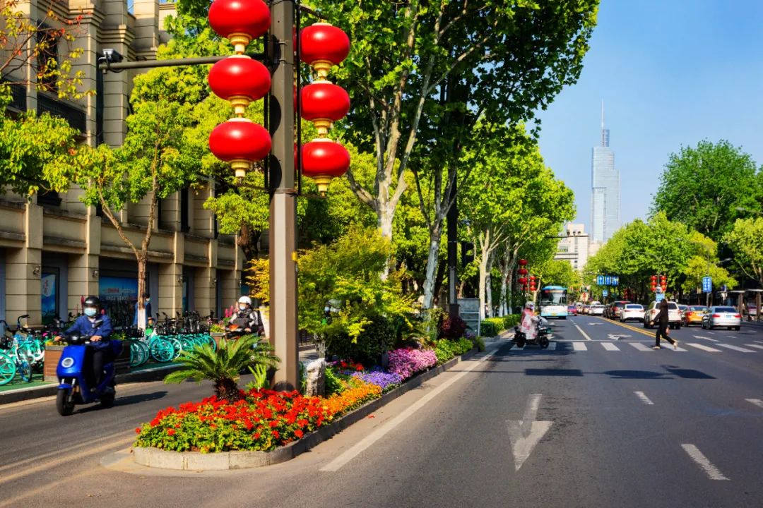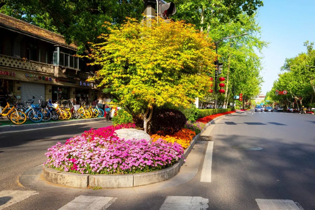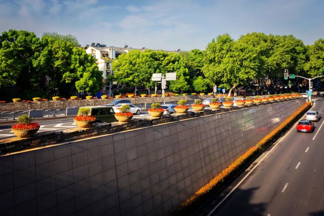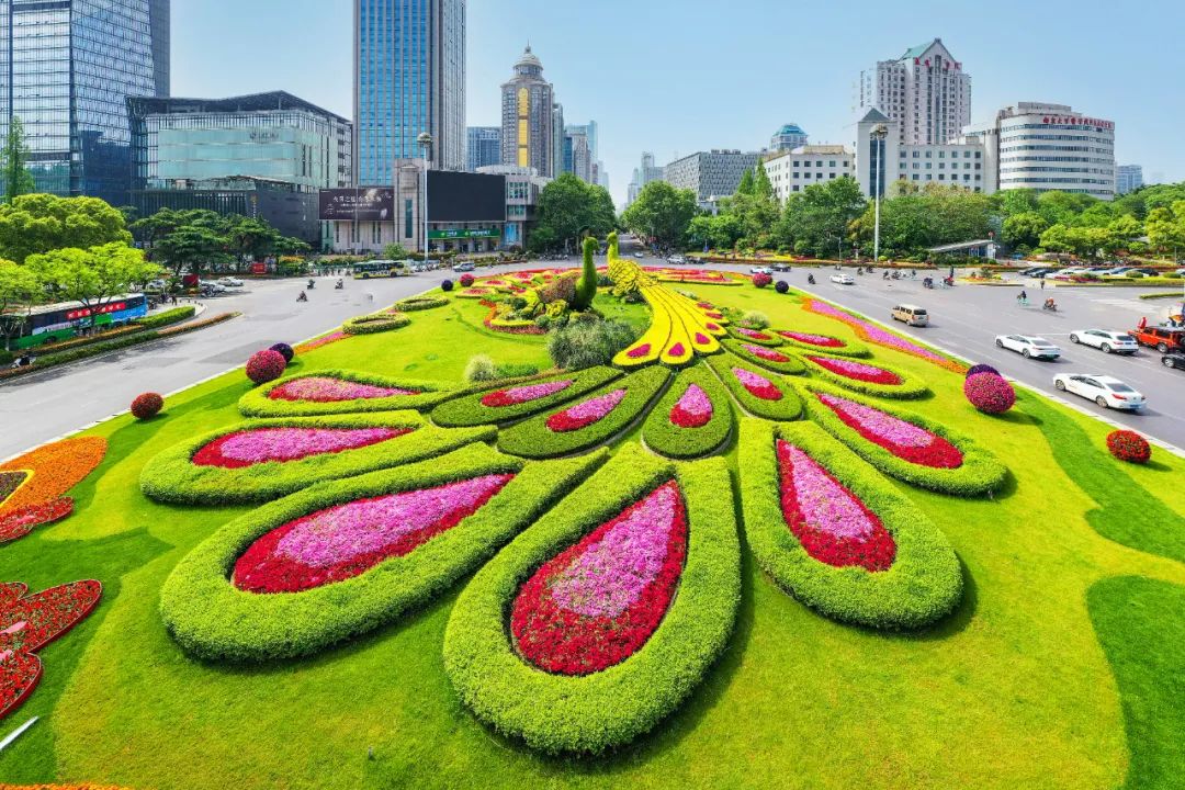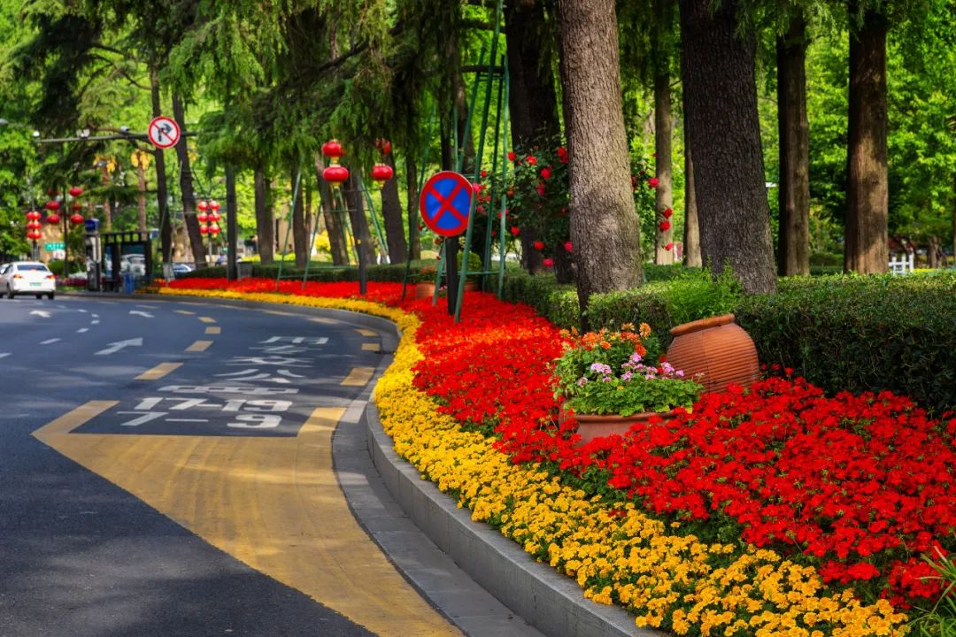 對(duì)市府門前路、長(zhǎng)江路、九華山站、荔枝廣場(chǎng)、中山門城墻等重要節(jié)點(diǎn)容器花箱、花球、燈桿掛花及新街口東北角綠地進(jìn)行花卉布置,選用朱蕉、羽扇豆、毛地黃、天竺葵、桑貝斯鳳仙、金雀、澳洲朱蕉、變?nèi)~木、四季海棠、鼠尾草、歐石竹、垂掛牽牛等花卉,以色彩鮮明、層次豐富的設(shè)計(jì)感,裝扮城市街角,營(yíng)造濃厚的節(jié)日氣氛。