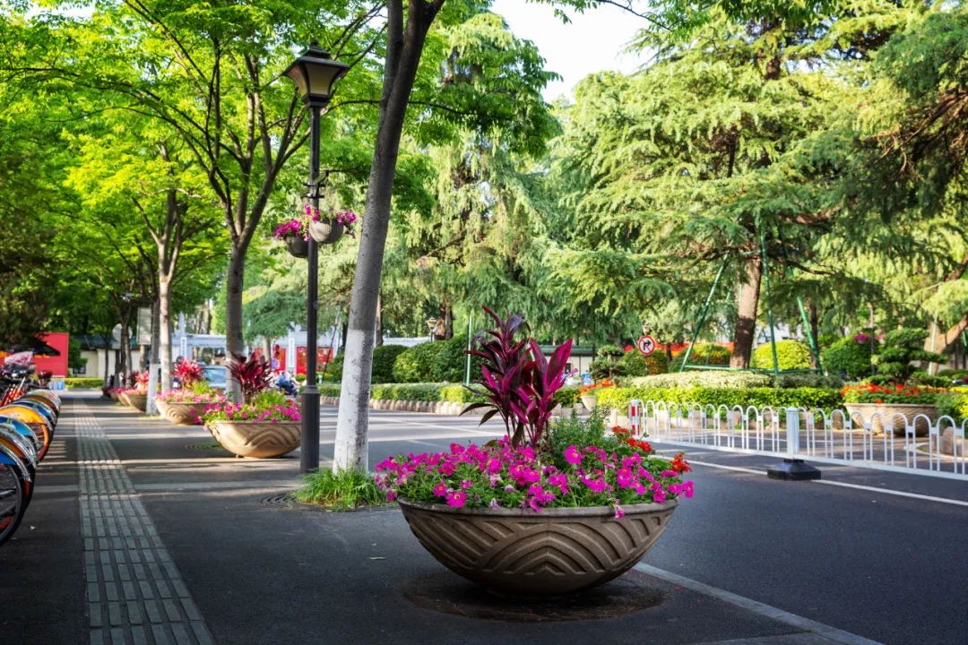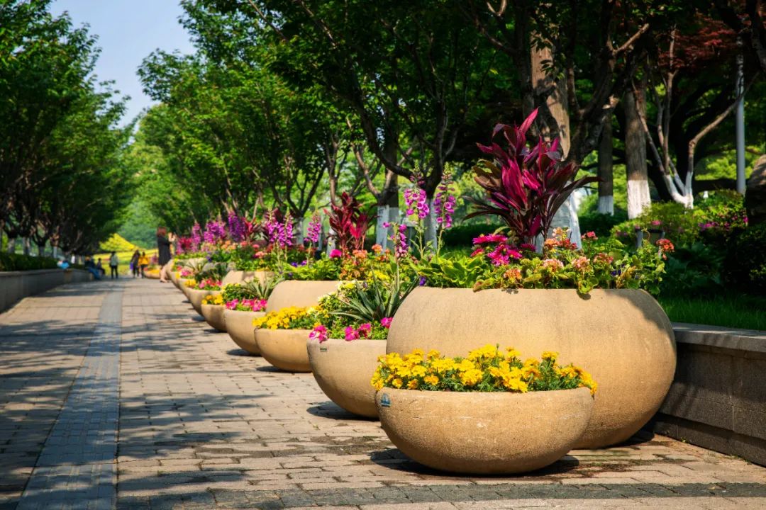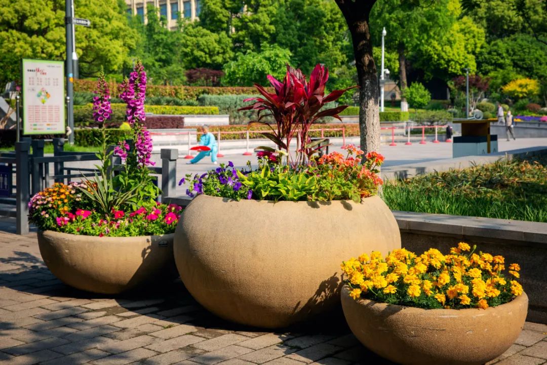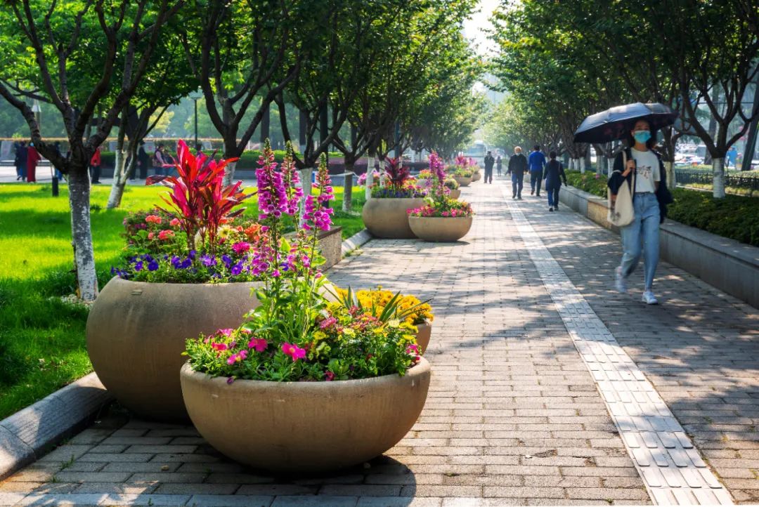 鼓樓市民廣場(chǎng)花境、組合花碗、花傘等繼續(xù)以色彩豐富、花卉進(jìn)行布置,裝扮生機(jī)盎然、環(huán)境宜人的城市客廳。